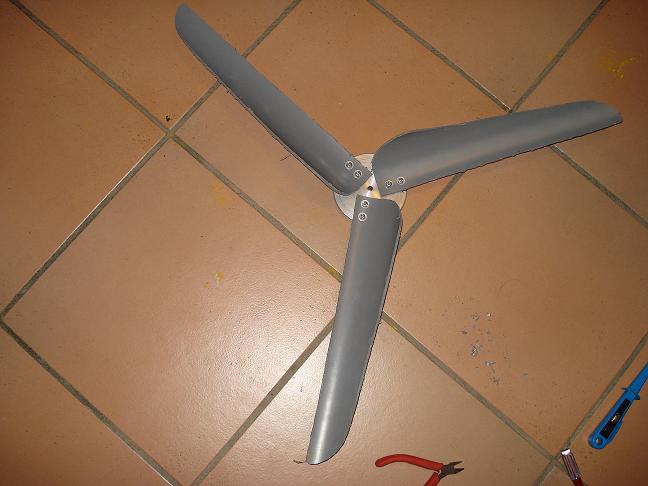 Είχα δοκιμάσει με διπλά φτερά κολημμένα με κόλλα για PVC αλλά ήταν πολύ βαριά με αποτέλεσμα να μην πιάνει τα rpm των μονών.
