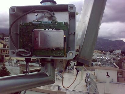 4) μεταφορα του router που εξυπηρετει το link με Κυλληνη ακριβως πανω στο μπρατσο του πιατου και κατασκευη κουτιου ετσι ωστε να συνδεεται το pigtail κατευθειαν πανω στο feeder. Αποτελεσμα.. 2db κερδους :?: