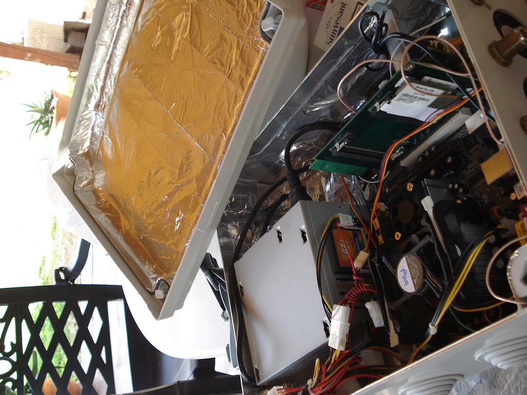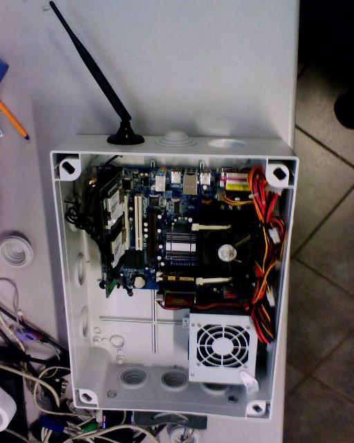 Στο πλαστικό κουτί..τα ηλεκτρομαγνητικά πεδία της Αρόης έκαναν το pc να κάνει άπειρα κουλά..οπότε του φτιάξαμε κλωβό faraday αν και η κατάρα της Αρόης συνέχισε με 2 "καμμένες?" cm6..Το pc λειτούργησε κανονικά με τον κλωβό...