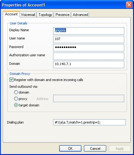 7. Στο πεδιο “Proxy server address” εισαγετε την ΙΡ του voip server (Πχ: 10.140.7.1)